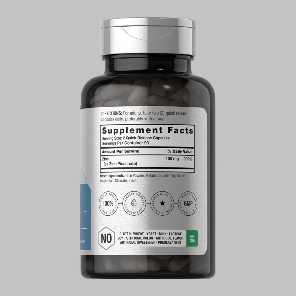 • ALTA POTENCIA: Las cápsulas de liberación rápida entregan 100 mg de picolinato de zinc por porción